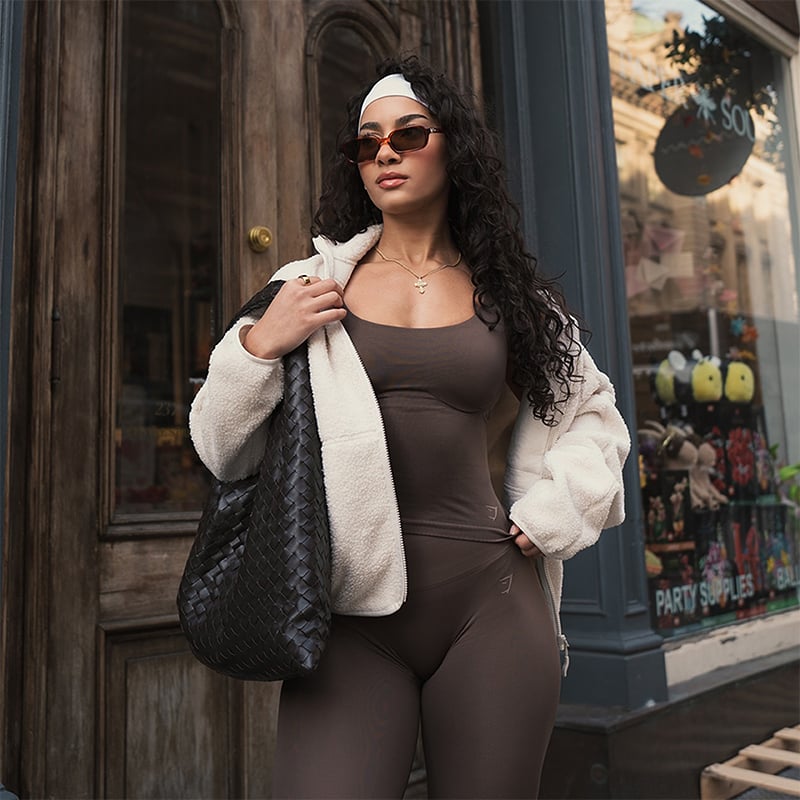 So a word of advice: Whether lifting is on your agenda, a hot girl walk or a matcha date, let brown be the color you reach for this season. We’ve handpicked the best brown outfit ideas, with styling tips and exclusive intel on the latest color trend from our very own Stylists here at Gymshark.